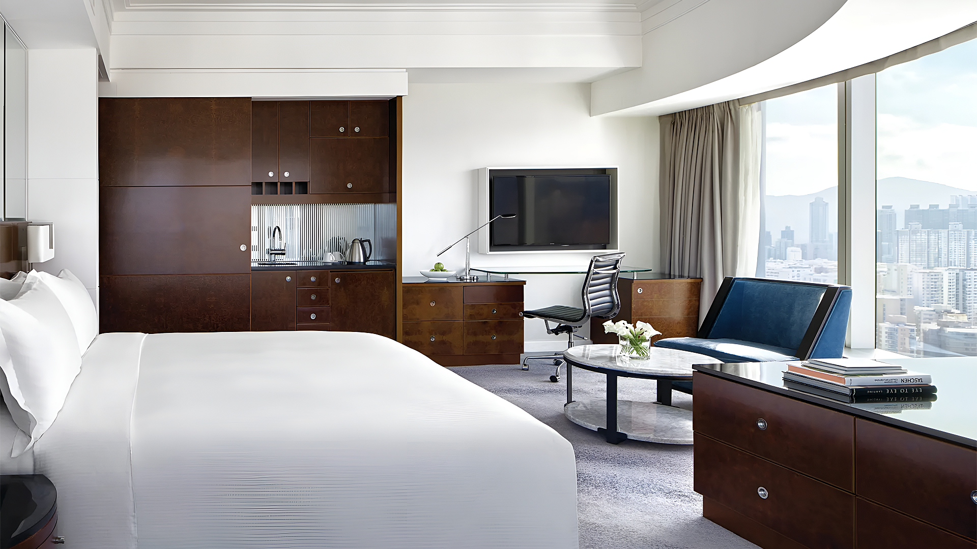 本项目位于香港旺角一家五星级奢华酒店的客房空间。家具设计融合精致材质与现代美学,细节考究,线条流畅,整体风格典雅隽永。空间氛围静谧舒适,营造出沉浸式的高端居住体验,充分展现当代奢华酒店的格调与品位。