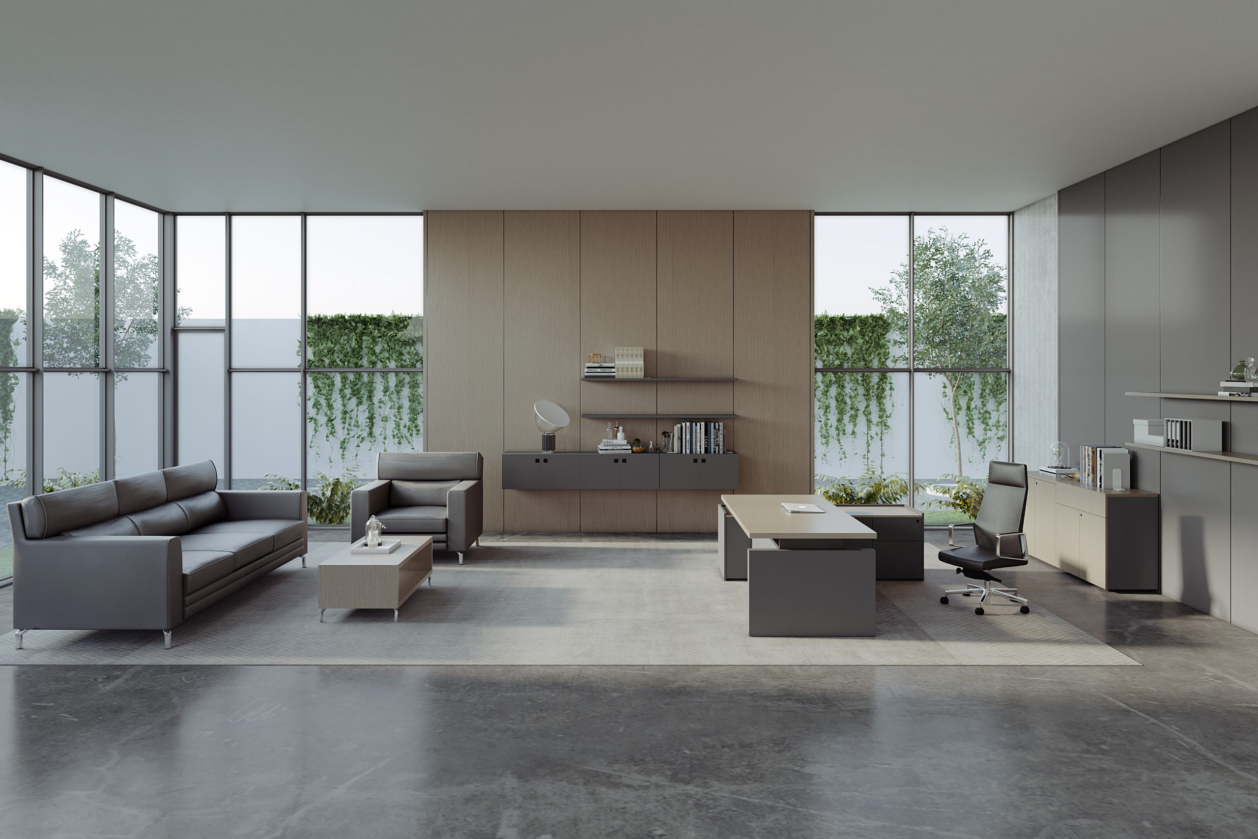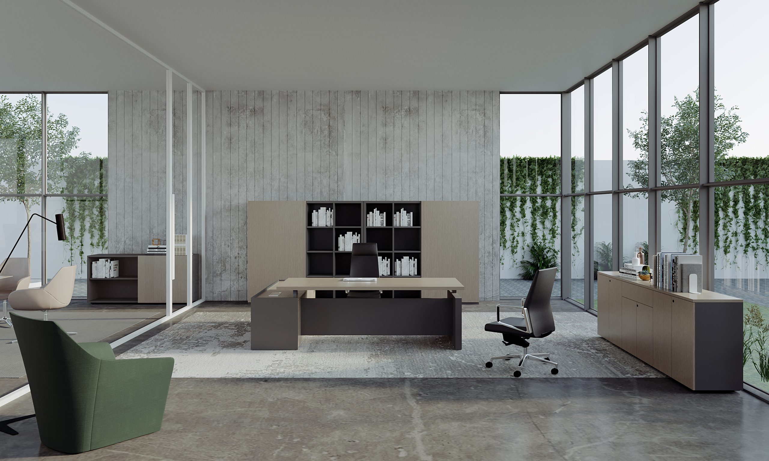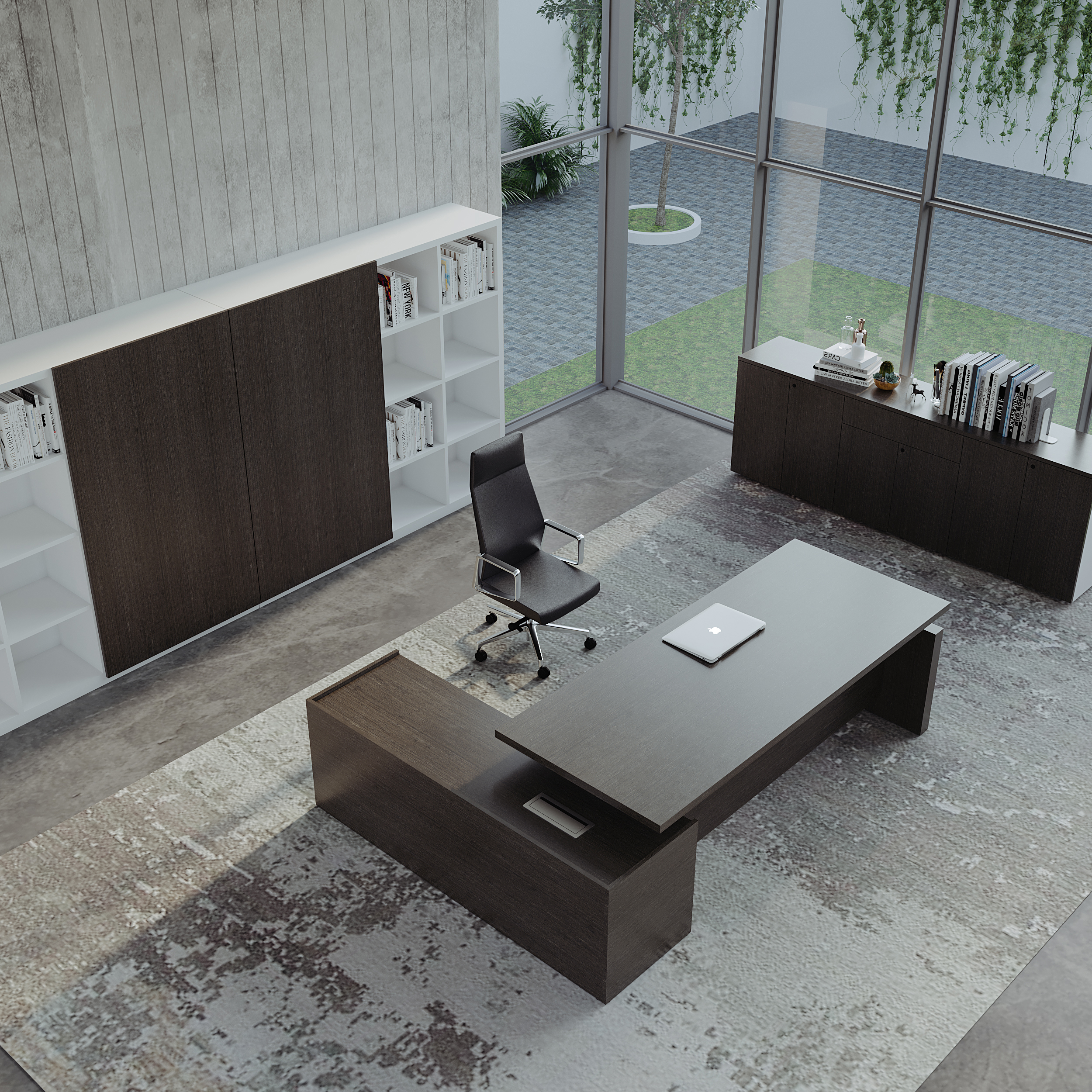 - Flexible modular storage solutions include sideboards, cabinets, and open shelving to suit a variety of workspace needs