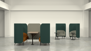 - Wide-ranging collection featuring low, mid, and high-back sofas, occasional tables, and meeting pods.